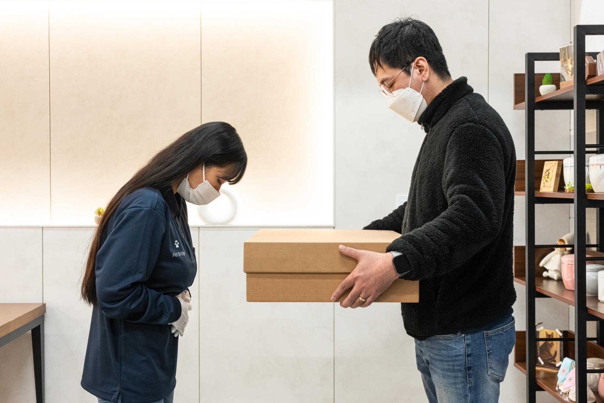 유골분이 훼손되지 않도록 유골함에 봉안한 후 보호자님께 인도합니다.