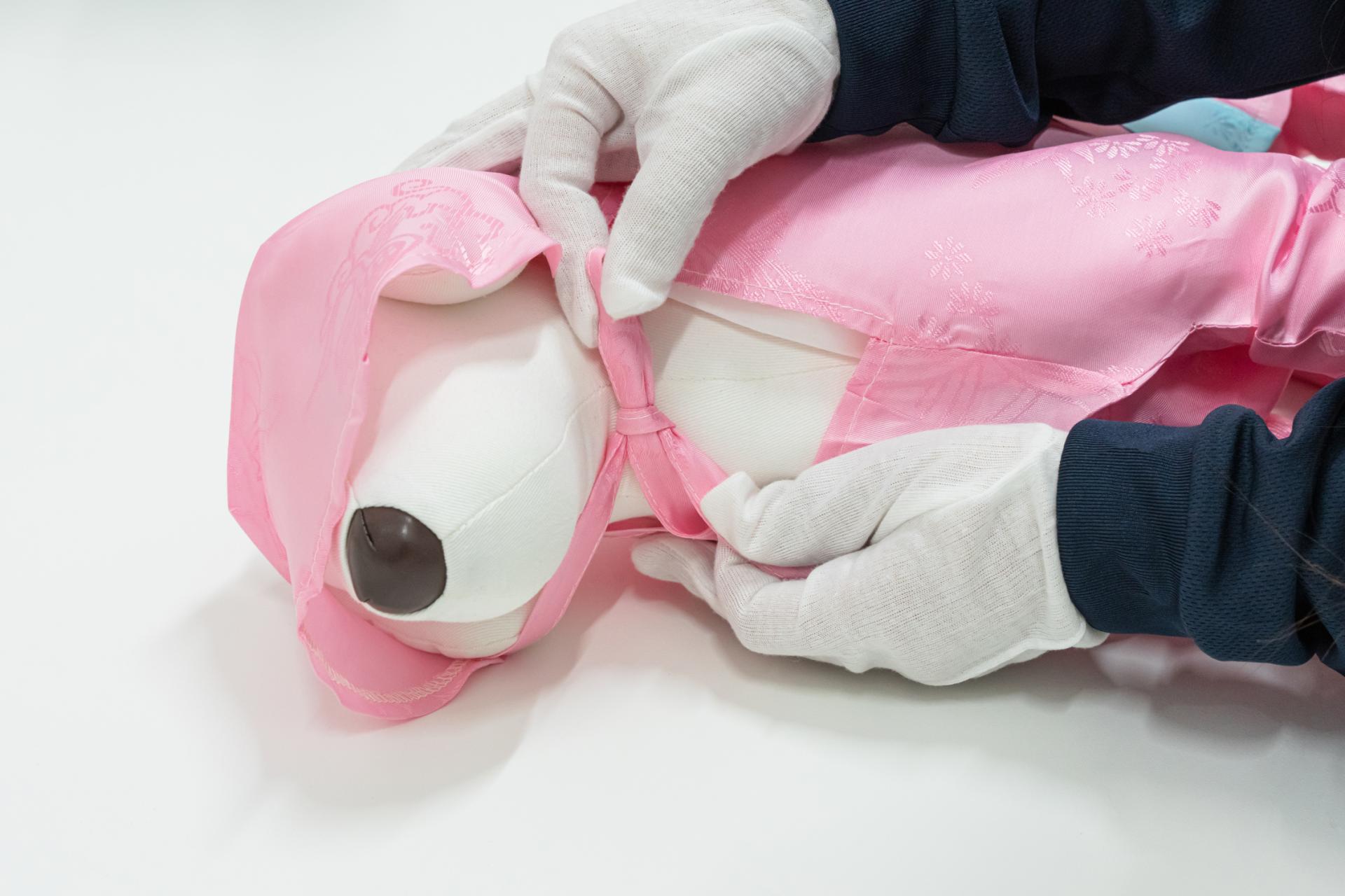 아이의 생전 모습과 가장 비슷한 모습으로 인사를 나누실 수 있도록 몸을 깨끗하고 단정하게 정리하여 준비된 관에 입관합니다.
